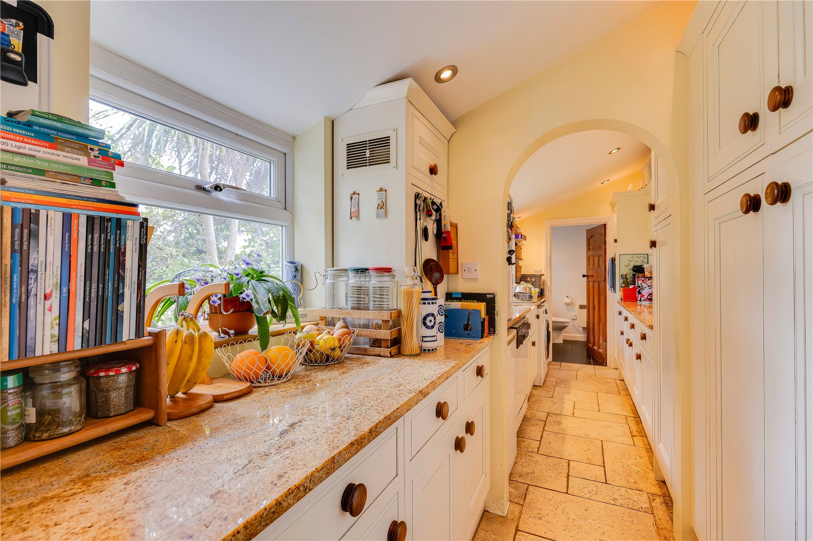 Built in 1926, this outstanding and deceptively spacious period property has been lovingly maintained and thoughtfully improved by the same family for over forty years. Bursting with character and charm, it offers beautifully proportioned accommodation throughout. A welcoming entrance hall features the original staircase balustrade and stunning herringbone woodblock flooring. The front living room enjoys a large bay window, an elegant fireplace, and a delightful original detail — the retained servant bells. The second reception room, currently used as a sitting room, sits to the rear with further woodblock flooring, , and access out to the lovely rear garden. The extended kitchen is a true highlight, providing extensive storage and a wonderful blend of traditional and modern style. Features include granite work surfaces, a Belfast sink within the utility area, and Jerusalem limestone tiled flooring. The kitchen is home to a classic Aga stove (which also provides hot water for the property), as well as a built-in Stoves double oven, gas hob set on the island, and an American Range Master fridge freezer with plumbing. There are electric plinth heaters, and ample space for family dining and entertaining. A stunning cloakroom with WC, vanity storage, and a window completes the ground floor.To the first floor, the spacious main bedroom features a bay window to the front and a modern en-suite shower room. There are three further double bedrooms — two to the rear and one to the front — along with a generous family bathroom. The second floor provides a large fifth bedroom (currently used as a hobby room) with a stylish contemporary en-suite shower room. Outside, the front garden is beautifully presented with steps leading up to the entrance. The rear garden enjoys established planting, a patio seating area, and lane access, along with a brick-built shed and garage access.