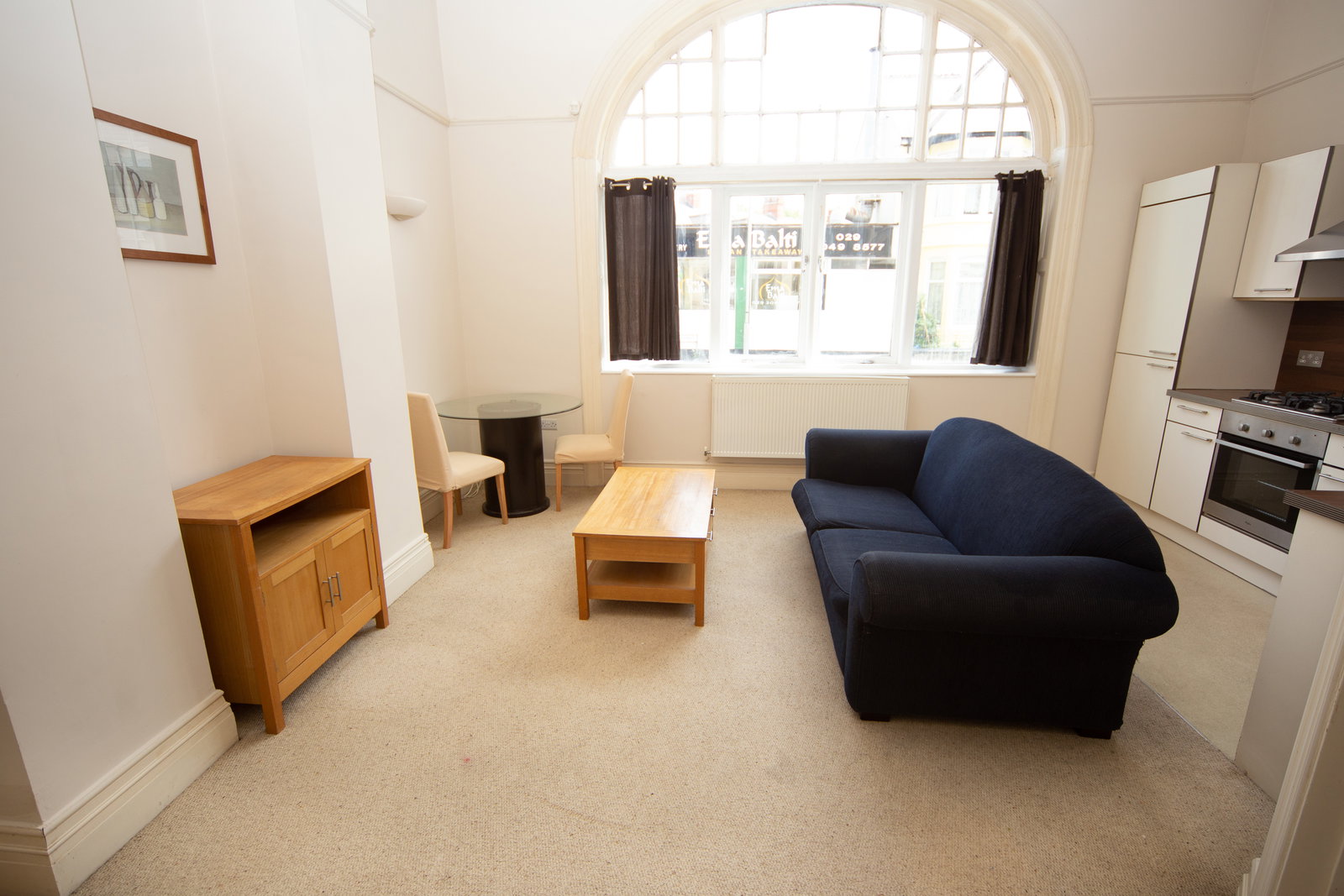 Steps lead to the entrance that you share with one other flat into the communal hall way and this apartment is to the left hand side. The property comprises of small hallway stepping down to the open plan living/kitchen area with high ceilings. The kitchen has built in appliances including a dishwasher. There is a modern bathroom with shower over the bath and a double bedroom. The property further benefits from gas central heating area and a basement area in the main building to store bikes.
