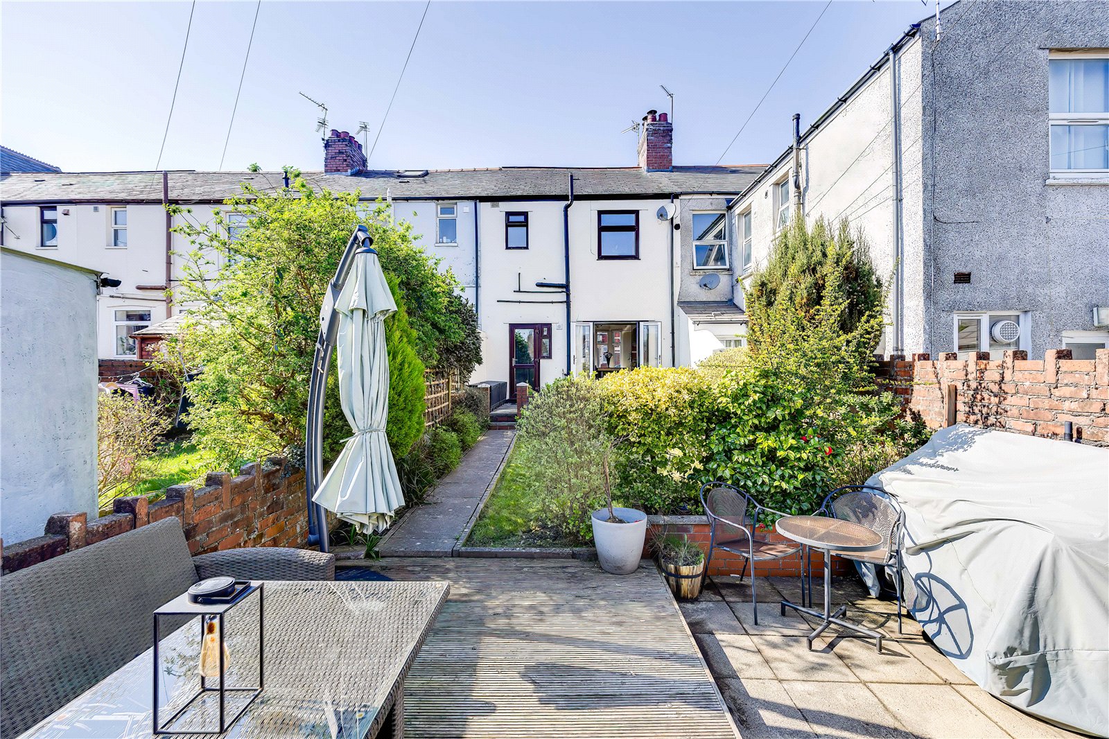 A charming and tastefully presented three-bedroom mid-terraced home, ideally positioned on a quiet street just off Clodien Avenue. The property is conveniently located close to a range of local amenities, regular bus routes, and offers excellent transport links to the city centre and beyond. Beautifully decorated throughout, the home offers a spacious open-plan living and dining room, finished with stylish LVT flooring and featuring patio doors that open directly onto the rear garden, creating a bright and sociable living space. The entrance hallway benefits from bespoke understairs storage, including cleverly designed cupboards and pull-out drawers, providing practical and well-thought-out storage solutions. The property also features a fitted kitchen, along with a modern bathroom to the first floor and benefit from humidity-sensor ventilation systems. Further improvements include recent roof works carried out to enhance stability and water tightness, including renewed lead flashings and replacement guttering and downpipes, offering added peace of mind. To the rear, the property enjoys a lovely garden with a natural lawn area, a decked seating area, patio, and astro turf area. A roller shutter door provides access to a private parking space, with the added benefit of gated rear lanes for security.